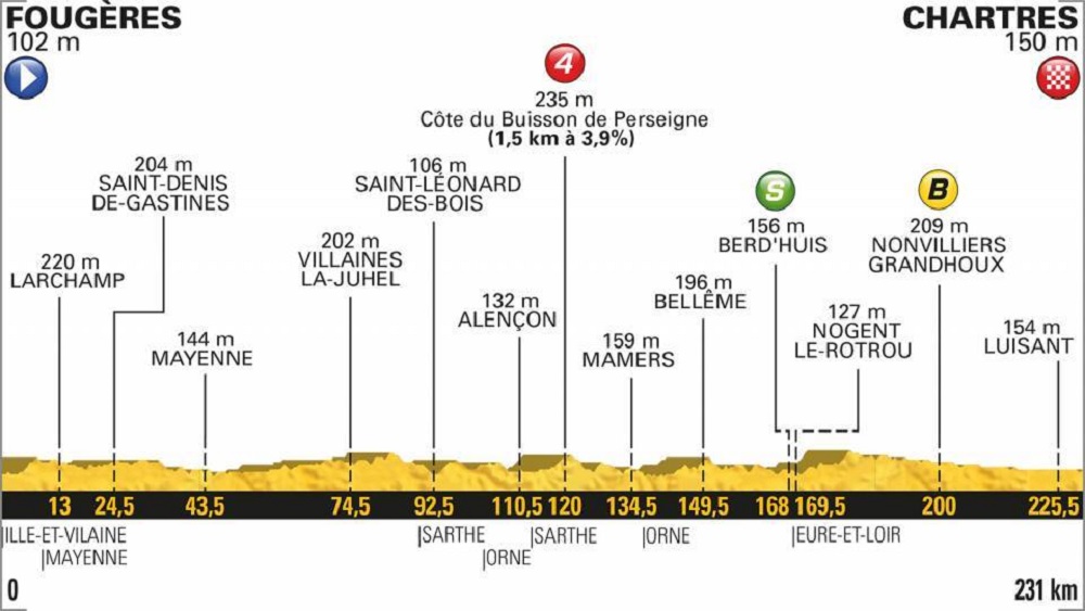 Mañana viene otra etapa llana, pero larga. 231 kilómetros entre Fougères y Chartres sin apenas desnivel.