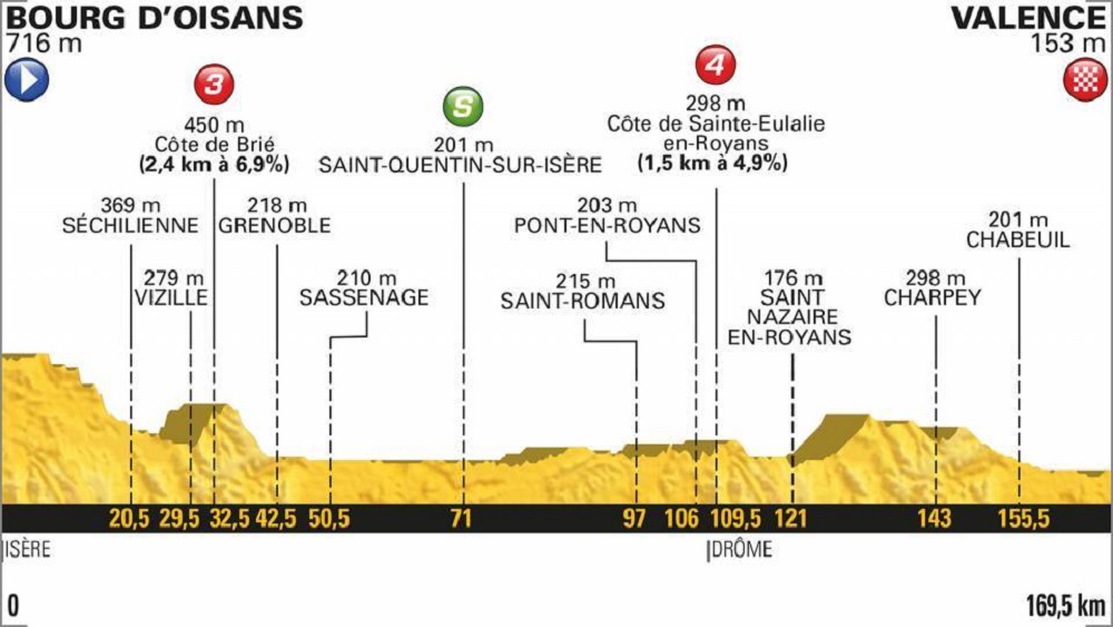 Mañana descansan las piernas. Nos despedimos de la montaña para una etapa llana de 169,5 kilómetros entre Bourg d’Orsans y Valence. Jornada para los velocistas y para que los favoritos recuperen energía.
