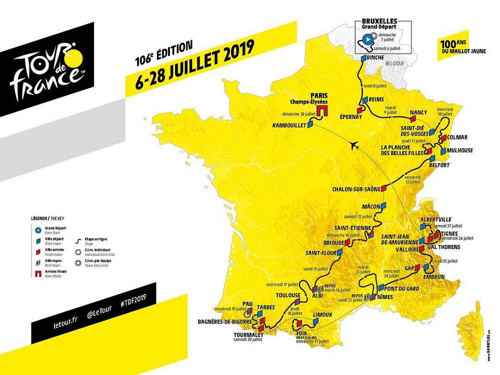 El Tour del año que viene arrancará el 6 de julio en Bruselas, con una primera etapa de 192 kilómetros, en los que ya habrá algún muro importante. Después, sin abandonar Bélgica, vendrá una segunda etapa de contrarreloj por equipos. Será una de las dos únicas ocasiones en las que los ciclistas se medirán al crono, siendo la otra la 13º etapa. En ambas ocasiones el recorrido será de 27 kilómetros.