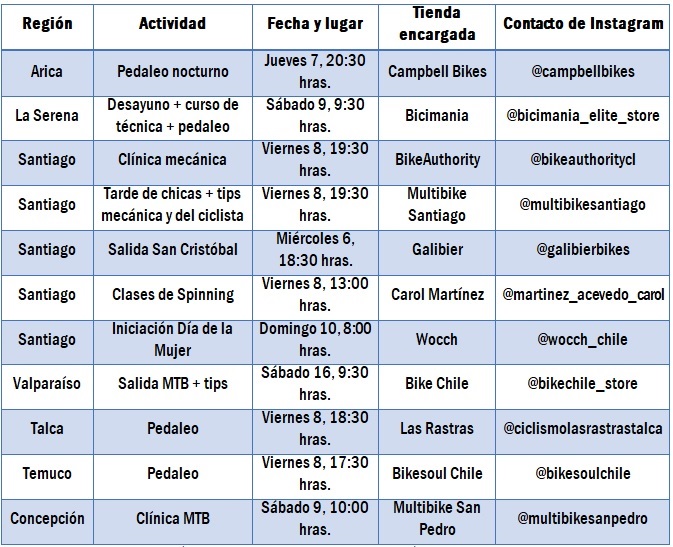 Este viernes 8 es el Día Internacional de la Mujer, y la marca de ciclismo californiana Specialized llevará a cabo varios eventos en sus tiendas de todo Chile para celebrarlo.