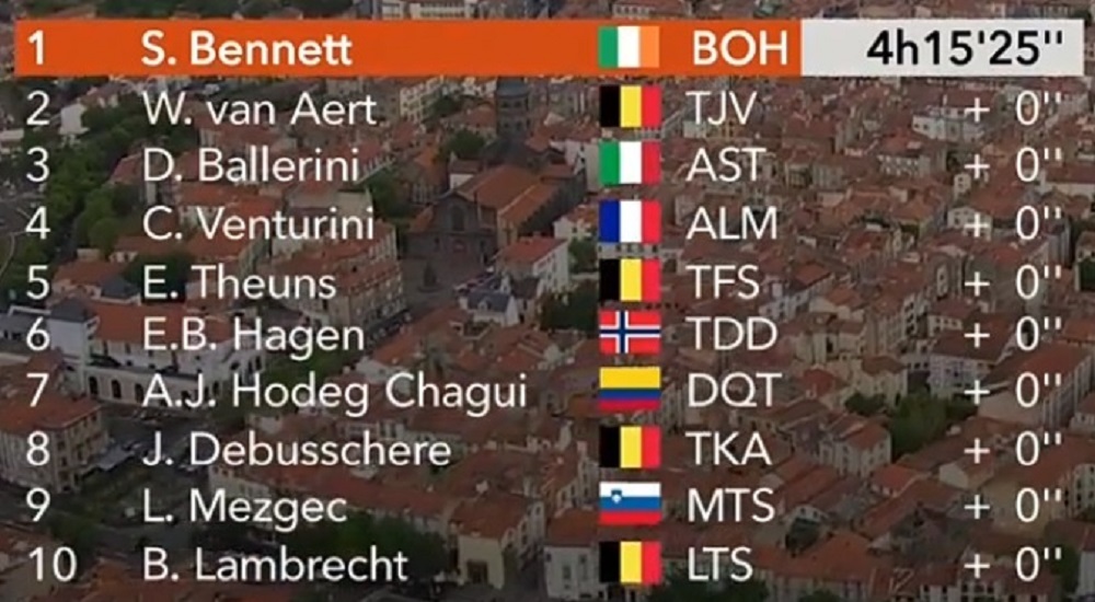 Este martes fue la tercera etapa del Critérium du Dauphiné, que tuvo un recorrido de 177 km, partiendo desde Le Puy en Velay hasta el norte en Riom, donde resultó vencedor el belga Sam Bennett (Bora-Hansgrohe) con 4:15:25, el segundo lugar fue para el belga Wout Van Aert (Jumbo) y el tercer puesto para el italiano Davide Ballerini (Astana).