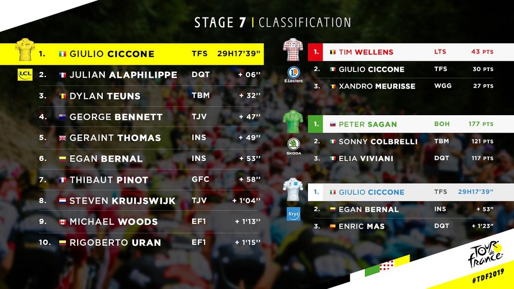 Por segundo día seguido Giulio Ciccone (Trek-Segafredo) vestirá el maillot amarillo totalizando un tiempo 29h 17′ 39».