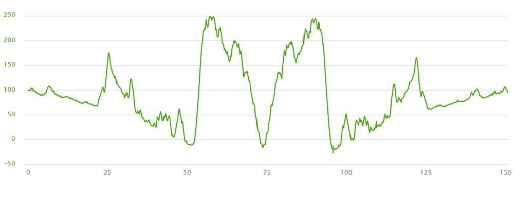 Bucalemu en el kilómetro 52 nos recibe con una agradable bajada. Giro hacia el norte y es aquí donde la carrera empieza de verdad. Larga subida de 5-6 kilómetros con tramos largos al 11% muy duros. Si algo de piernas quedaban, aquí se fue todo. Todavía quedan 20 km para el retorno y no quiero más guerra. El camino sigue con repechos, pero con una tendencia a la baja.