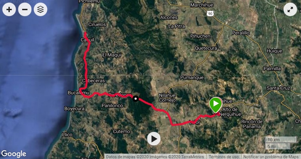 Mapa: “Desde Viña Santa Cruz, cerca de Lolol a Cahuil”