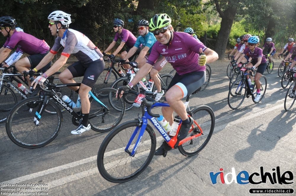 Finalmente faltando 20 km logró encontrar una buena rueda y nos venimos a buen ritmo (30-35 k/h). Entramos en la Viña Santa Cruz y aún nos queda una larga vuelta por camino de tierra con piedras, arena y huellas que exigen la máxima concentración y suerte para no pinchar faltando tan poco. Los últimos 300 metros son sobre maicillo compacto. Finalmente, en la meta, después de mucho sufrimiento disfrutamos de un estupendo post carrera con cerveza, masajes, música y una puntual entrega de premios.