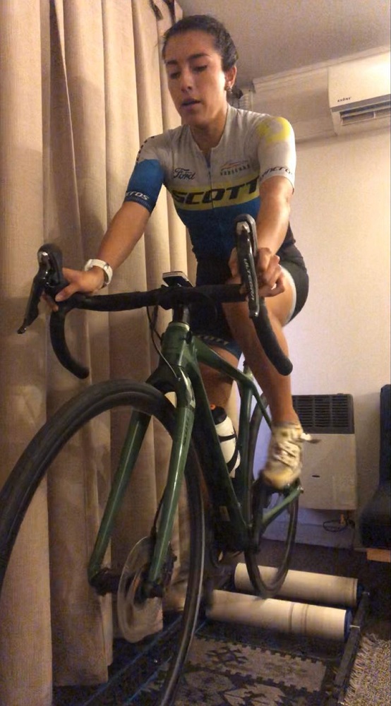 Lo mismo de siempre: Ordenar y limpiar el departamento, cocinar, jugar con mi gata y lo que ha cambiado es que entreno entre 1 a 3 veces al día entre rodillo y preparación física. Entreno a mis alumnos online y también tengo cursos de tarot y astrología online.