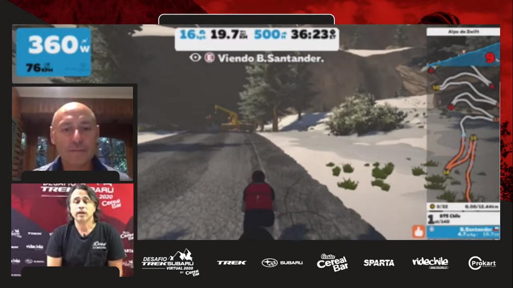 “Buenísimo este desafío virtual, estuvo muy buena la carrera, entretenida con esto del Zwift y me siento cómodo andando y compitiendo en casa”, aseguró Santander minutos después de terminar la carrera en la transmisión.