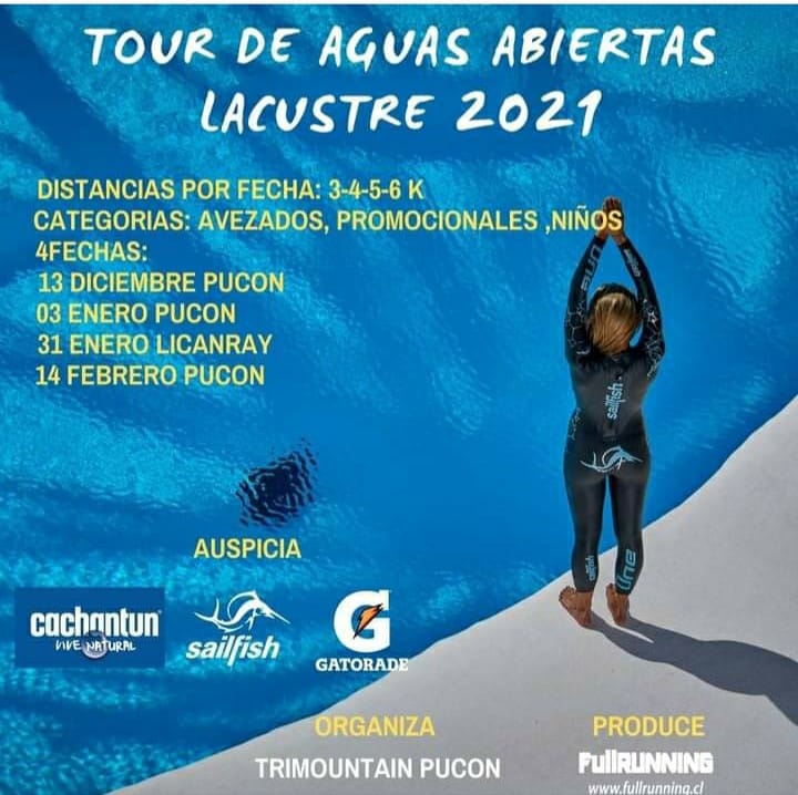 El pasado fin de semana se llevó a cabo la primera competencia de aguas abiertas en Chile en medio de la pandemia: el Tour Aguas Abiertas Lacustres 2021 en Pucón, organizado por el club deportivo Tri Mountain Pucón y con la producción de Full Running, que el próximo 31 de enero celebrará su tercera y cuarta fecha, y la convocatoria está abierta.
