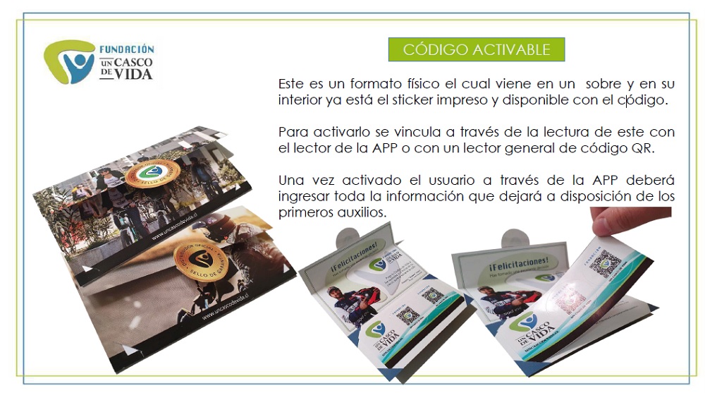 Básicamente la App consta del registro de los datos básicos de los usuarios en los que indiquen importante información para emergencias a través de un código QR y eventualmente generar su propio código QR personalizado para ser impreso y estampado en el casco.