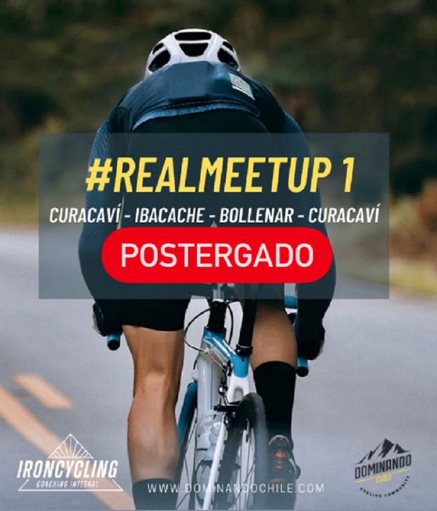 La organización del primer Real Meet Up 2021, un recorrido de 130 kilómetros que organiza el club Iron Cycling y Dominando Chile, informó que debido a los cambios de fase en la comuna de Curacaví (Región Metropolitana), deben “postergar el evento hasta nuevo aviso”.