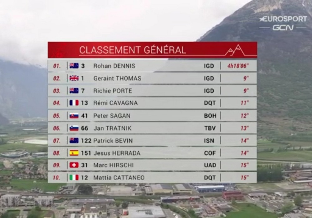 El Tour de Romandia, tuvo su prólogo ayer, que fue una contrarreloj individual celebrada en la localidad de Oron, donde se erigió como ganador el australiano Rohan Dennis (INEOS Grenadiers), quien además se mantuvo como líder en la clasificación general individual con tiempo total de 4:18:06.