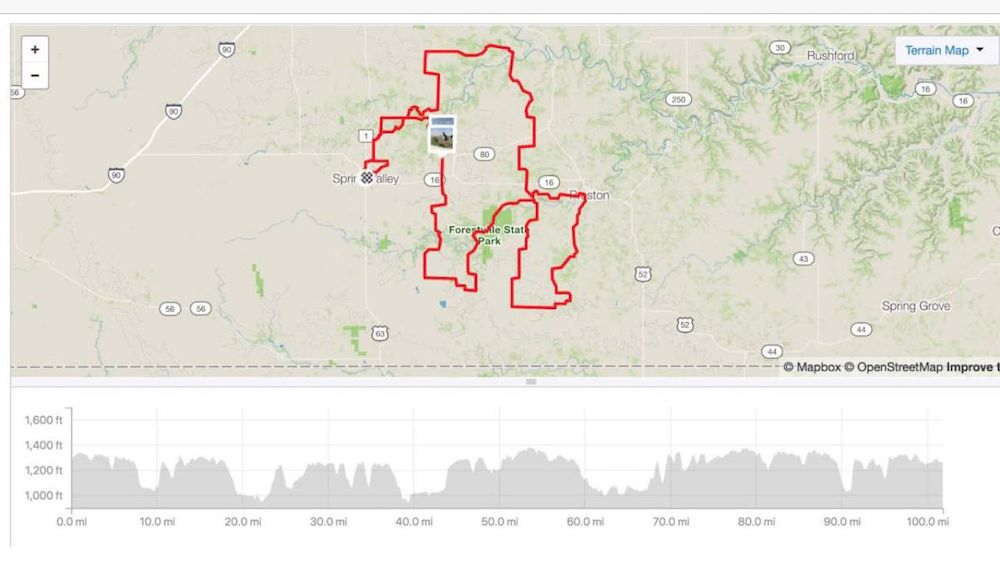 Sábado 5 de junio, me despierto a las 4:00 de la mañana y el termómetro marcaba 32 grados. Auto cargado y nos dirigimos a Spring Valley, un sector ubicado en el sur del Estado de Minnesota. 100 kms al Este se encuentra el Río Misisipi, bordeando el Estado de Wisconsin. Este año sólo 200 inscritos aproximadamente (efecto Pandemia), de los cuales no llegaron un 20% (efecto calor). Camel bag lleno, dos botellas de agua, mucha comida, Garmin cargado y listo.