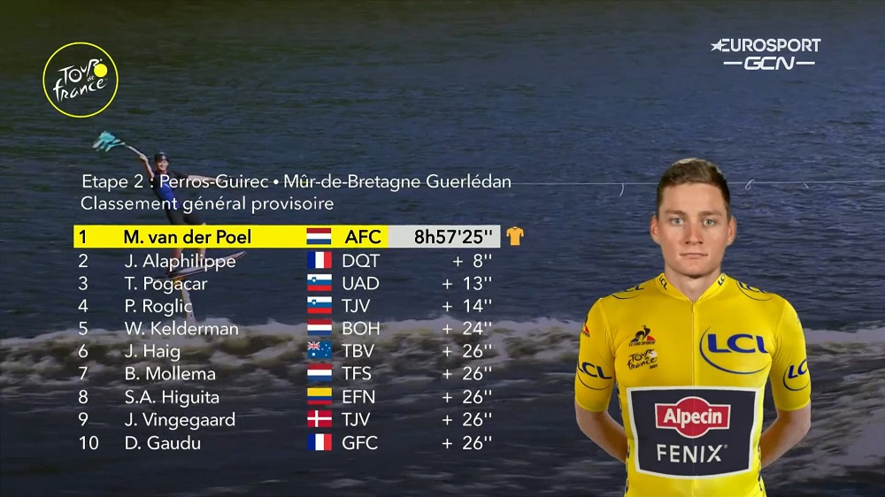 - Maillot amarillo (general): Mathieu Van Der Poel (Alpecin-Fenix) 8:57:25