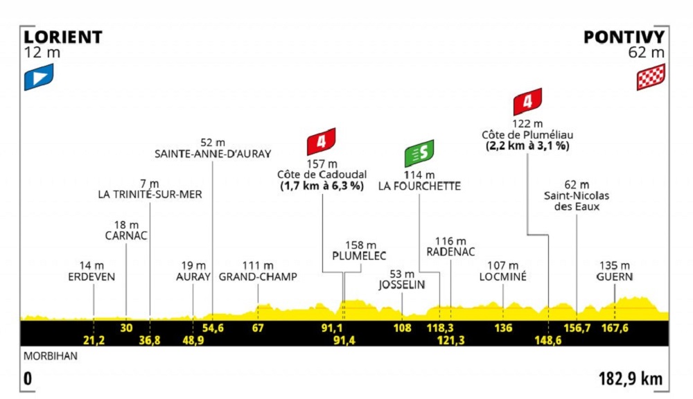 Para mañana 28 de junio, la tercera etapa del Tour de Francia 2021 tendrá un recorrido de 182,9 kilómetros entre los sectores de Lorient hasta Pontivy.