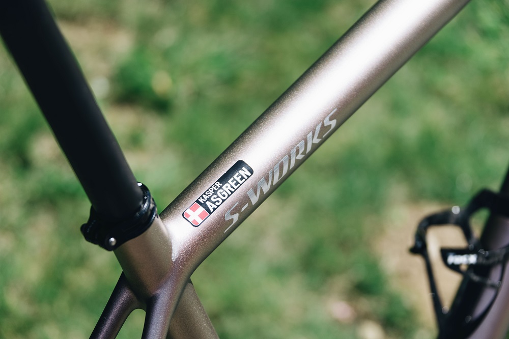 Según informa Specialized, esta Aethos tiene un “peso ligero sobre la aerodinámica y la entrega de potencia bruta. Con un cuadro de 585 gramos, la Aethos no sólo entrega el pedaleo suave que busca Kasper, sino que le permite tomar las decisiones estratégicas de los componentes mientras se mantiene en el peso mínimo de la UCI”.