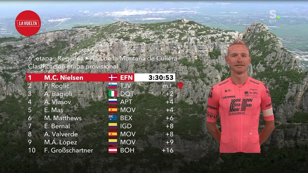 El ciclista danés Magnus Cort (Education First-Nippo) ganó la sexta etapa de La Vuelta, en un final de alta expectativa al vencer al esloveno Primoz Roglic (Jumbo-Visma) quien terminó muy cerca pero no le alcanzó para llevarse la etapa pero sí para recuperar el liderato de la clasificación general.