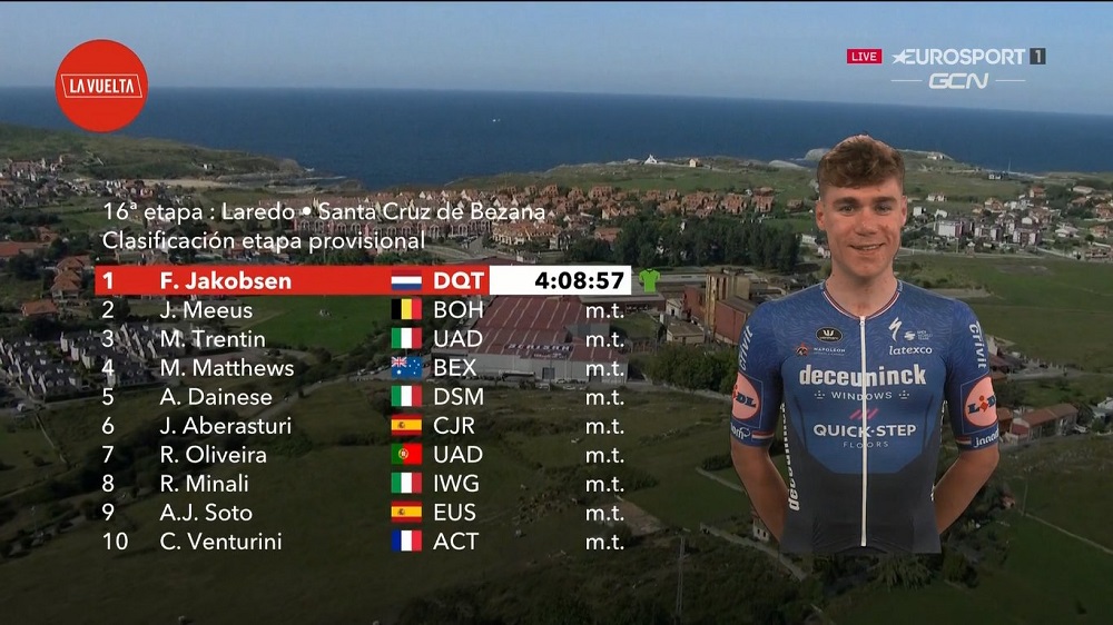 Jakobsen remató en la etapa plana de 180 km que partió en Laredo y terminó en Santa Cruz de Bezana, registrando un tiempo de 4 horas 8 minutos y 57 segundos, para convertirse en el primer ciclista que gana una etapa el día de su cumpleaños en La Vuelta desde hace 15 años.