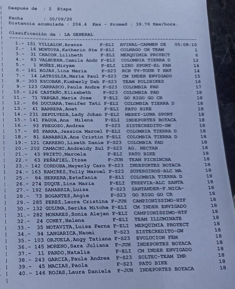 La ciclista chilena Aranza Villalón (Avinal- Carmen de Viboral) se proclamó vencedora de la 2ª etapa de la Vuelta femenina a Colombia, carrera de categoría 2.2 de la UCI, donde asumió el liderato.