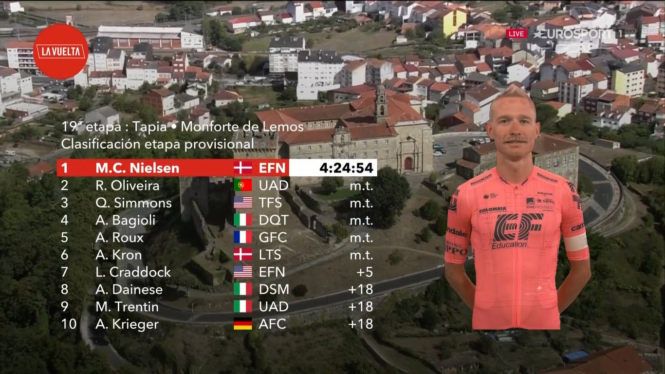 El danés Magnus Cort Nielsen (EF Education-Nippo) ganó la etapa 19 de La Vuelta a España 2021 y a falta de dos días las clasificaciones se mantienen igual que ayer.