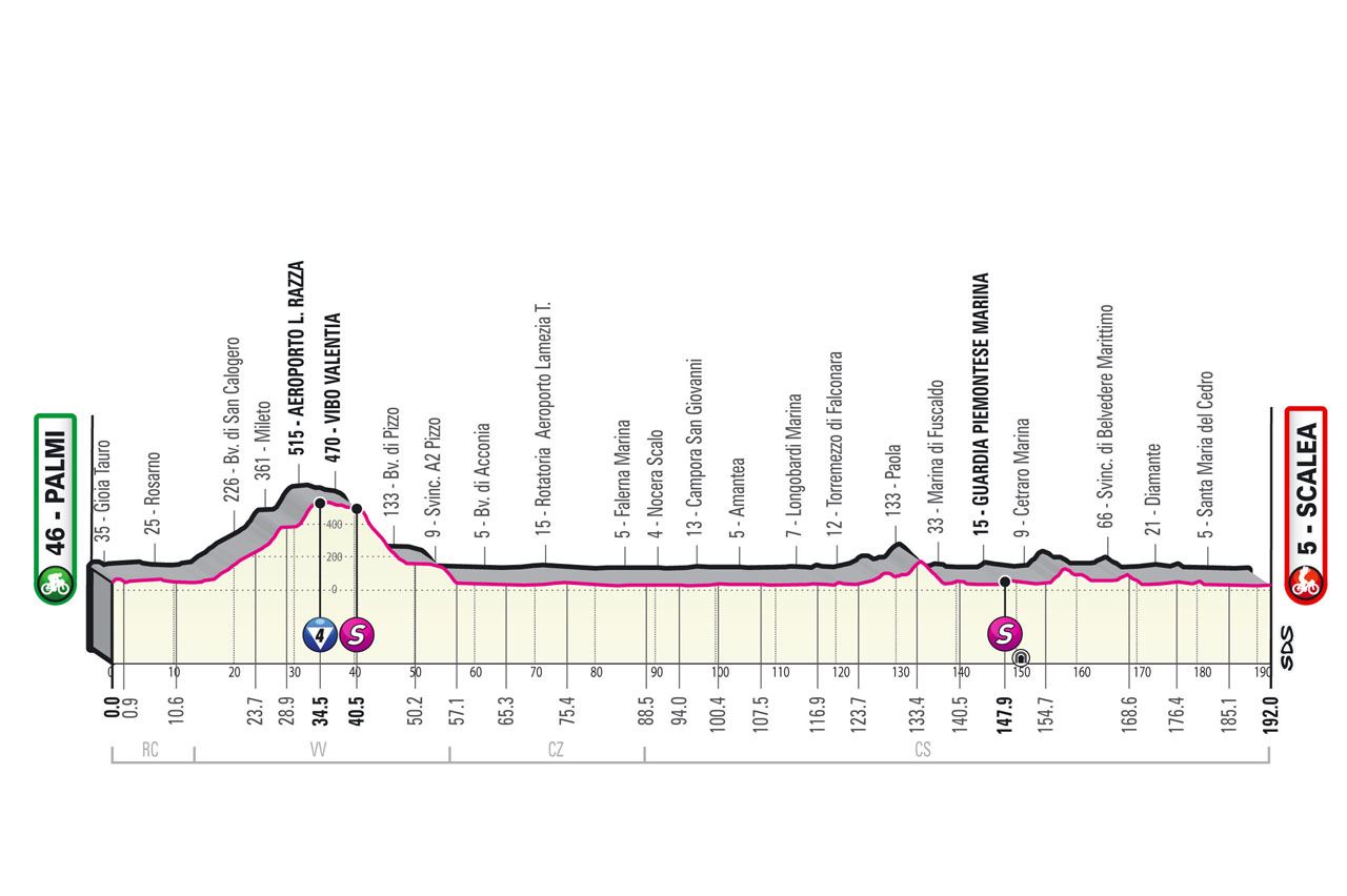 El Giro de Italia 2022 continúa este jueves con la etapa 6, la cual contempla 192 km. entre , Palmi y Scalea, una etapa principalmente llana, que tiene una única dificultad montañosa en el inicio de la carrera, en el kilómetro 20.