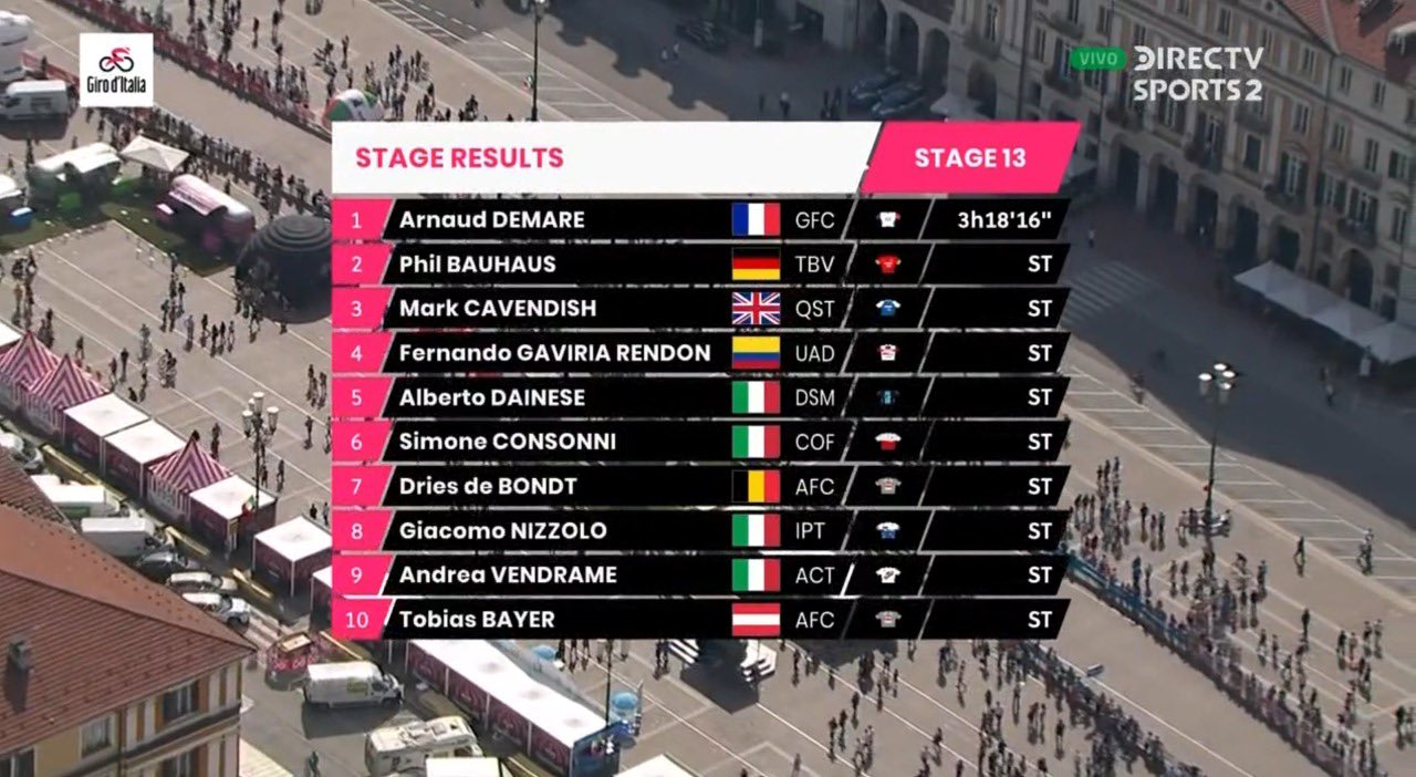 El ciclista francés, Arnaud Demare (Groupama-FDJ), ganó la etapa 13 del Giro de Italia, en un recorrido de 150 km entre San Remo y Cuneo, con una remontada final de los sprinters frente a la fuga. Con esto, el ciclista de Francia suma su tercer triunfo en esta edición del Giro de Italia.