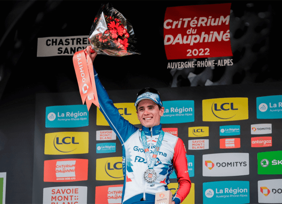 El francés David Gaudu se quedó la 3ª etapa Critérium du Dauphiné, tras sorprender en el sprint final al belga Wout van Aert, nuevo líder general de la competencia.