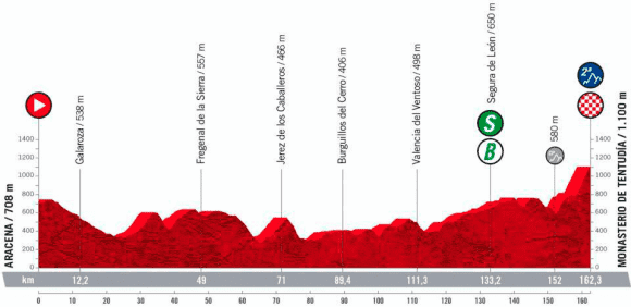 La Vuelta continúa el miércoles con la etapa 17, la cual contempla 162,3 km entre Aracena y Monasterio de Tentudía, con perfil de etapa llana.