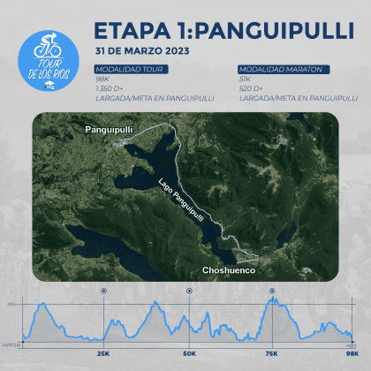 Modalidad Tour: 98km con 1350 m D+ (con largada y meta en Panguipulli)