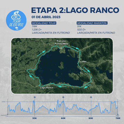 Modalidad Tour: 116 km con 1.236 m D+ (con largada y meta en Futrono)