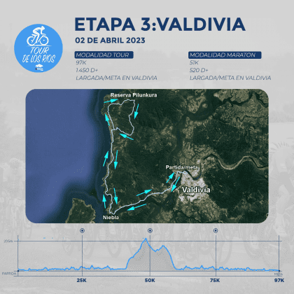 Modalidad Tour: 97km con 1450 m D+ (con largada y meta en Valdivia)