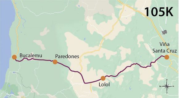La distancia de 105K contempla su partida y meta en la Viña Santa Cruz, pasando por las localidades de Lolol, Paredones y Bucalemu.