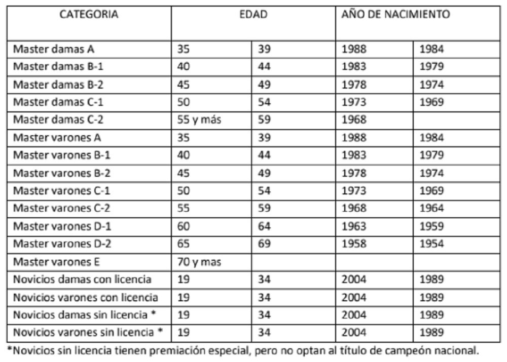 Las categorías de competencia serán: