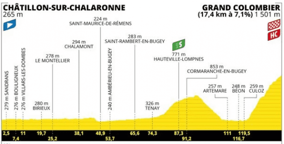 La etapa 13ª del Tour de Francia continúa mañana con un recorrido de 138 kilómetros entre Châtillon-sur-Chalaronne y Grand Colombier, una de las grandes jornadas de montaña de este Tour que vuelve al Grand Colombier después de tres años.