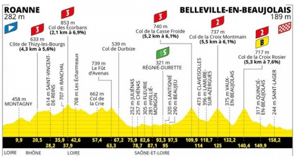 El Tour de Francia continúa mañana con su etapa 12ª de un recorrido de 169 kilómetros entre Roanne y Belleville-en-Beaujolais, etapa con un final en alto que favorecerá a la fuga de los ciclistas más explosivos del Tour.