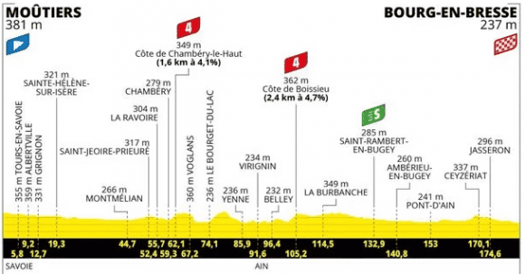 La etapa 18ª del Tour de Francia continúa mañana con un recorrido de 186 kilómetros entre Moûtiers y Bourg-en-Bresse, una etapa clave para los mejores esprínters del Tour que serán los favoritos para llevarse esta jornada.