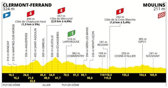 La etapa 11ª del Tour de Francia continúa mañana con un recorrido de 180 kilómetros entre Clermont-Ferrand y Moulins, una etapa clave para los que buscan el maillot verde debido al kilómetro de recta final.