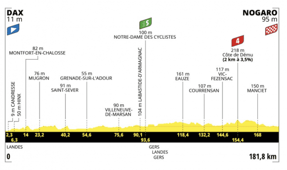 La 4ª etapa del Tour de Francia continúa el día de mañana con un recorrido llano de 182 kilómetros entre Dax y Nogaro.