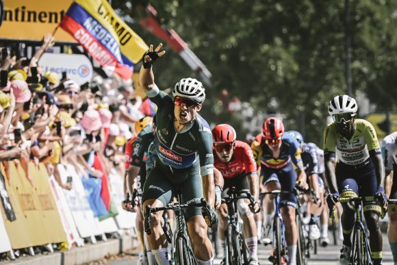 Philipsen se llevó la victoria en la etapa 7ª del Tour de Francia con un tiempo de 3 horas, 46 minutos y 28 segundos, seguido por el eritreo Biniam Girmay ( Intermarché-Circus-Wanty) que llegó segundo y por Luca Mozatto (Team Arkea – Samsic), quien completó el podio.