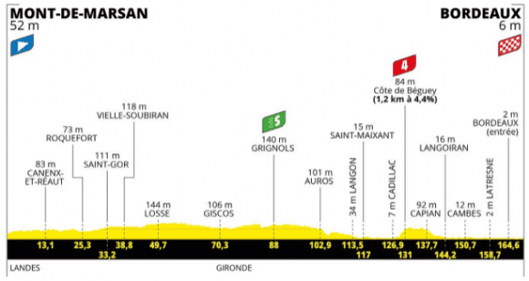 La 7ª etapa del Tour de Francia continúa mañana con un recorrido de 170 kilómetros entre Mont-de-Marsan y Burdeos, una etapa que tiene dos kilómetros en línea recta llegando a la meta, los que pueden ser fundamentales para definir al ganador de la carrera.