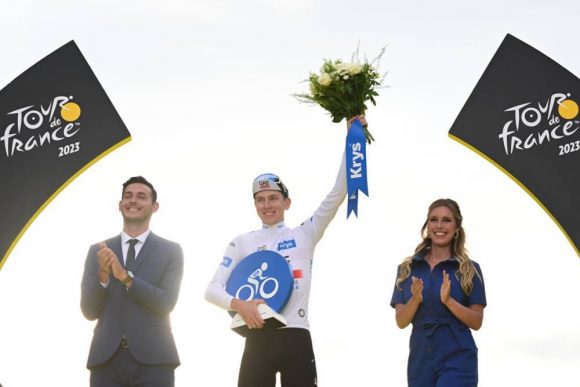 El premio de consuelo para Tadej Pogačar (UAE Team Emirates), quien no pudo aguantarle el ritmo a Vingeegard en las etapas finales del Tour, fue ganar nuevamente el maillot blanco (mejor joven), logrando un tiempo acumulado de 82 horas, 13 minutos y 11 segundos, seguido por el español Carlos Rodríguez (Ineos Grenadiers) y por el austriaco Felix Gall (AG2R Citroën Team).