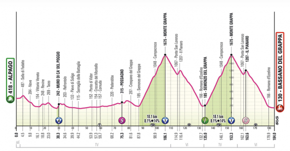 Mañana continúa el Giro con la etapa 20 que contempla un recorrido de montaña que llevará a los ciclistas de Alpago hasta Bassano del Grappa por 184 kilómetros.