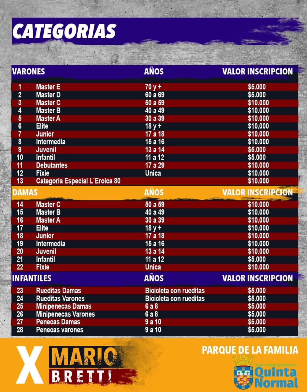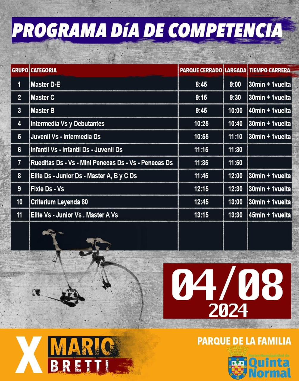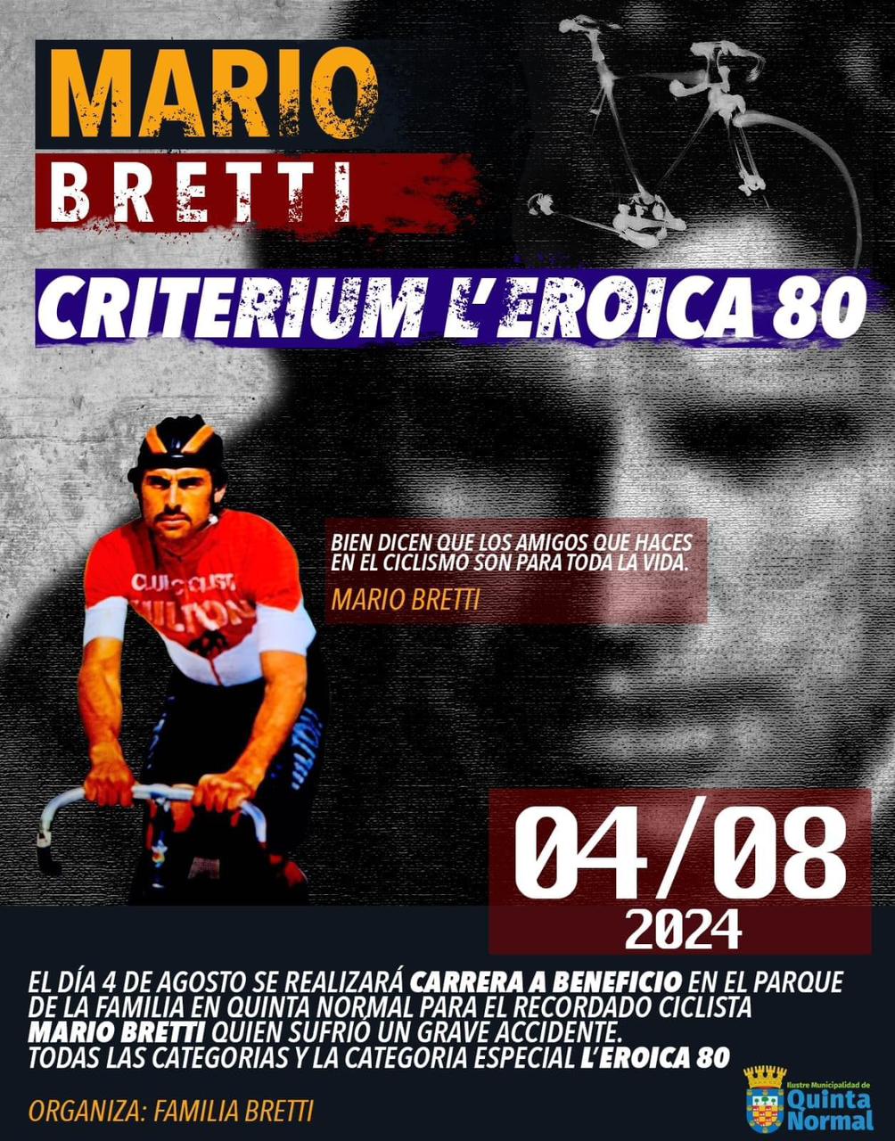 El domingo 4 de agosto el Parque de la Familia en Quinta Normal, Región Metropolitana, recibirá la Critérium L’Eroica 80, una competencia de ciclismo en modalidad critérium a beneficio del exciclista Mario Bretti, quien sufrió un grave accidente meses atrás.
