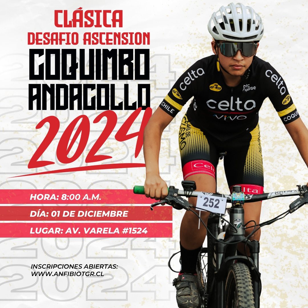 El domingo 1 de diciembre de 2024 se llevara a cabo la Clásica Desafío Ascensión Coquimbo-Andacollo 2024, organizada por el Club Ciclista Celta Don Tito con el apoyo de las Municipalidades de Coquimbo y Andacollo celebrará su XVII edición.