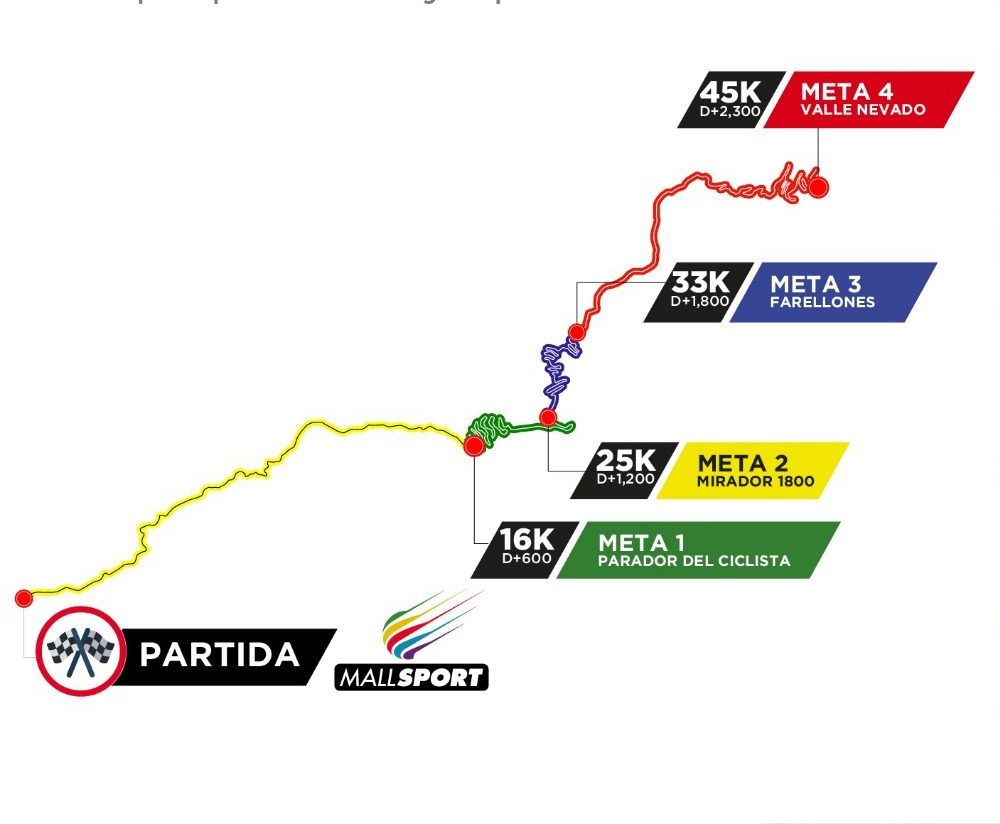 Modalidades: Ruta, MTB y E-Bike. - 45 KM – Valle Nevado – Descarga la ruta