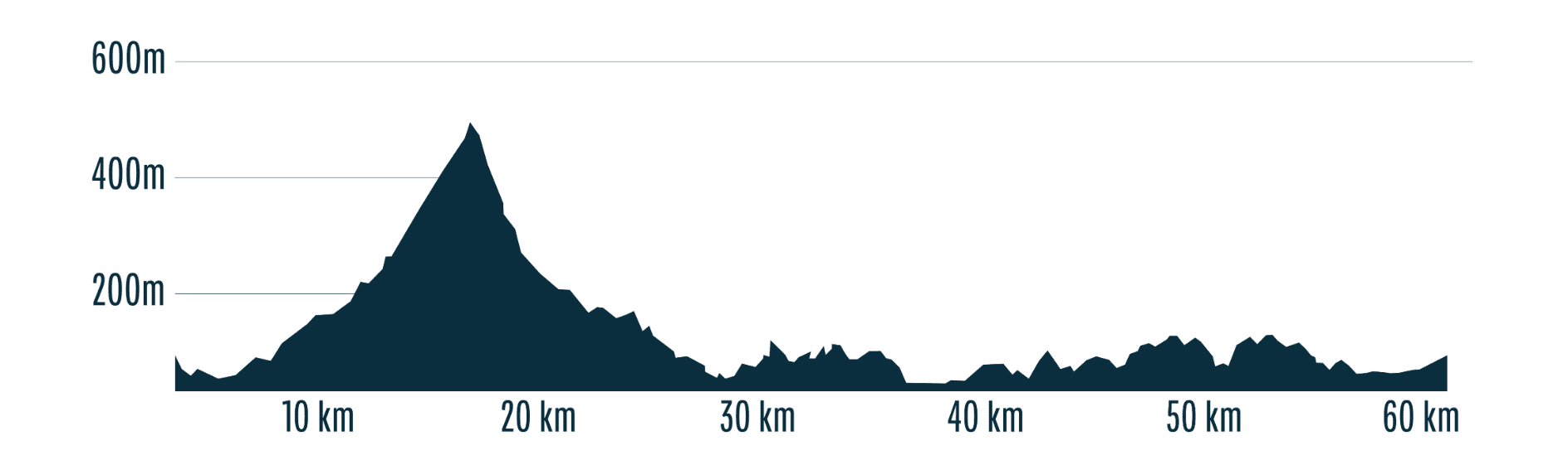 El Medio Fondo de 70 km mantiene su trazado dinámico y accesible, eliminando los ascensos más duros, pero conservando los repechos iniciales y los paisajes costeros. Este recorrido contempla 1.400 metros de ascenso.