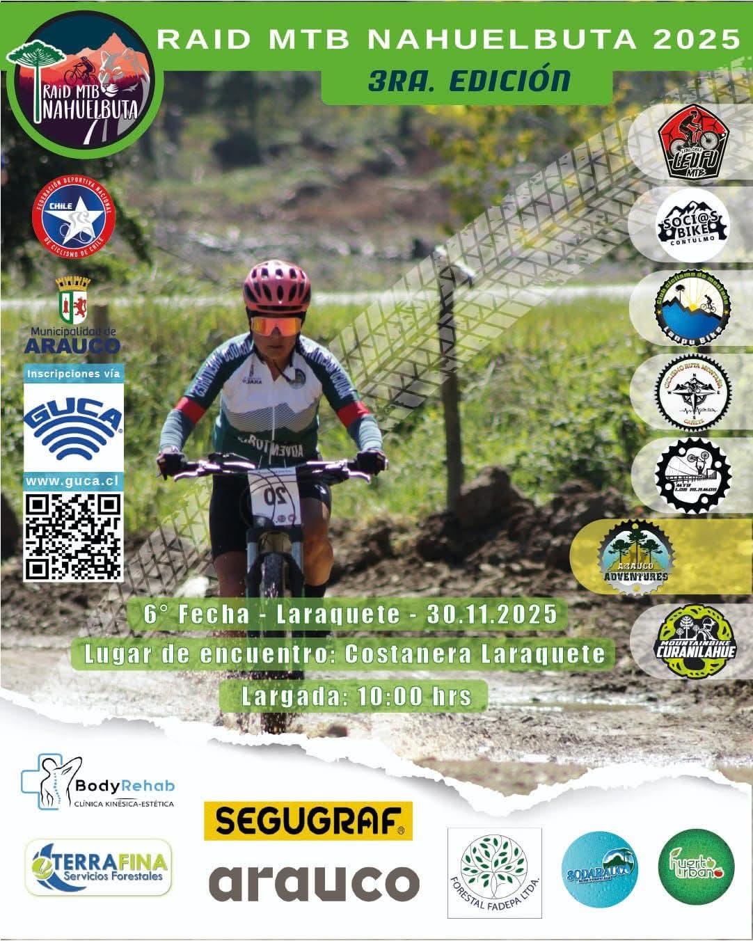 El domingo 30 de noviembre se llevará a cabo la tercera edición del Raid MTB Nahuelbuta 2025 y la sexta fecha se realizará en Laraquete, comuna de Arauco, región del Biobío y solo quedan 200 cupos disponibles.