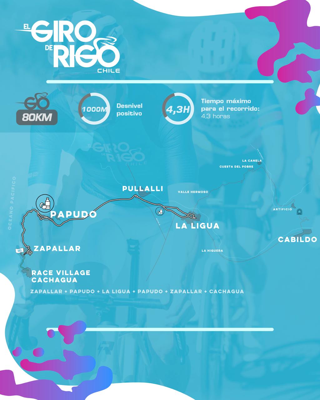 Con un recorrido de 80K y un desnivel positivo de 1.000m, el circuito comenzará en Zapallar, después pasará por Papudo y tendrá su punto de retorno en La Ligua.
