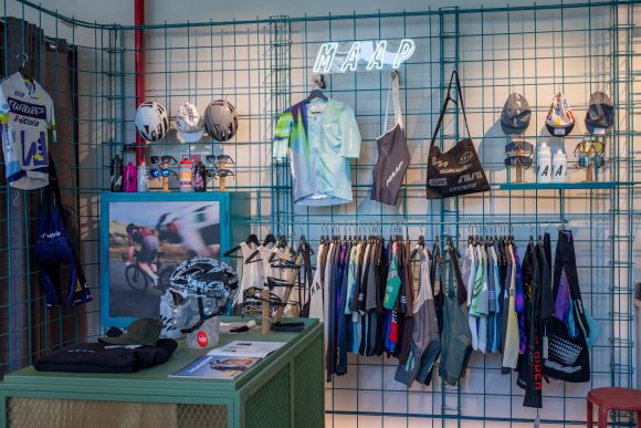 Junto a las bicicletas también podrás encontrar ropa de primer nivel con prestigiosas marcas como Rapha y Maap, además de equipación como son los lentes marca Scicon o cascos Sweet.