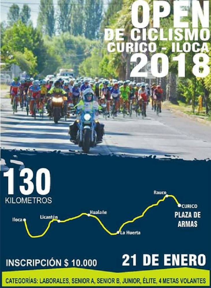 Este domingo 21 de enero se celebrará la edición 2018 de Open de Ciclismo Curicó – Iloca. 130 kilómetros de ruta para los que quieran comenzar el año compitiendo.