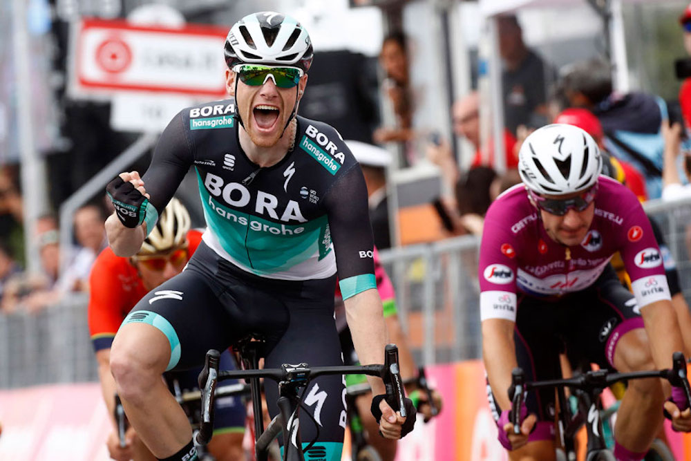 El irlandés Sam Bennett (Bora – Hansgrohe) logró su primera victoria en el Giro y en las grandes vueltas, luego de arrebatarle la etapa al favorito, el local Elia Viviani (Quick-Step Floors), en los últimos metros del sprint.